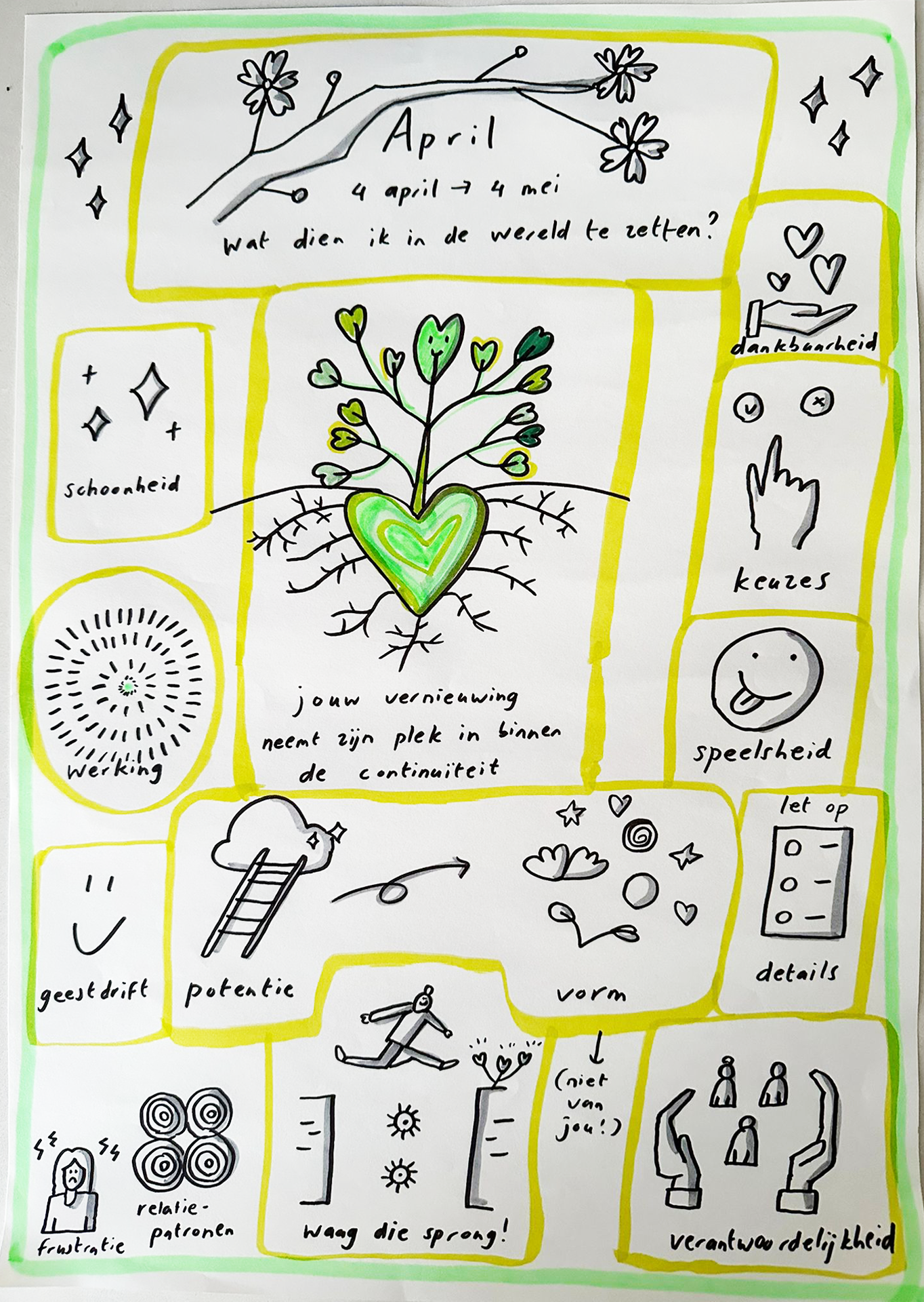 Volgens Jaap Voigt, die het boek ‘’leven en werken in het ritme van de seizoenen’’ schreef, is april de laatste maand van de lente. Nog heel even en dan gaan we de start van de zomer in. April gaat vooral om het aangrijpen van nieuwe mogelijkheden. Na het vormingsproces is het nu tijd om de sprong te wagen: van potentie naar vorm.